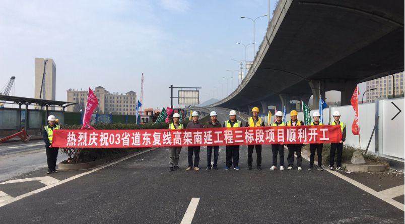 2018年11月20日上午10点18分,在震天的炮鸣声中,03省道东复线高架南延工程第3合同段正式开工。开工仪式在彩虹高架下匝道桥梁拆除工地举行。
