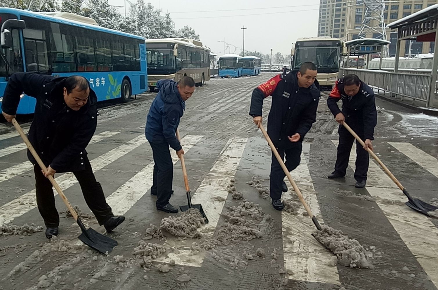 参加抗冰雪任务的不仅有各级管理干部,还有来自各个部室、车队、分公司、管理中心的一线司机、站员、站场保安、物业人员、修理工、公共自行车值守人员、党团突击队队员等。大家不畏严寒,相互配合、齐心协力,你铲我扫,一派热火朝天的景象,虽室外气温低至零度,但大家的抗击热情只增不减,越战越勇。特殊时期彰显公交本色,关键时刻尽显责任担当。大家心往一处想,劲往一处使,拧成一股绳,积极面对这场抗击冰雪的硬仗,确保了行人行车的安全畅通。
