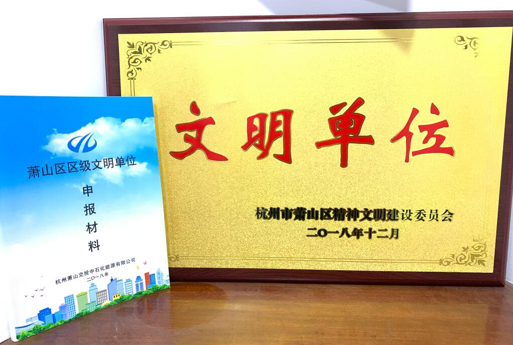 继获得萧山区“工人先锋号”、“青年文明号”、“巾帼文明岗”、义桥镇“实缴税收超伍佰万元突出贡献企业”荣誉称号后,交投能源公司在精神文明建设之路上又迈出了可喜的一步,首次被评为萧山区级文明单位。