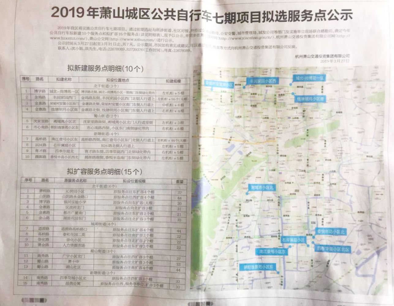 为推进市区公共自行车建设,通过前期选址与所涉街道,社区对接,并经过交通运输局、公安交警、城市管理局、城发公司等部门及实施单位现场联合踏勘后,确定今年公共自行车拟新建10个服务点和拟扩容15个服务点,现已完成选点公示工作和立项,后续工作正有序展开。