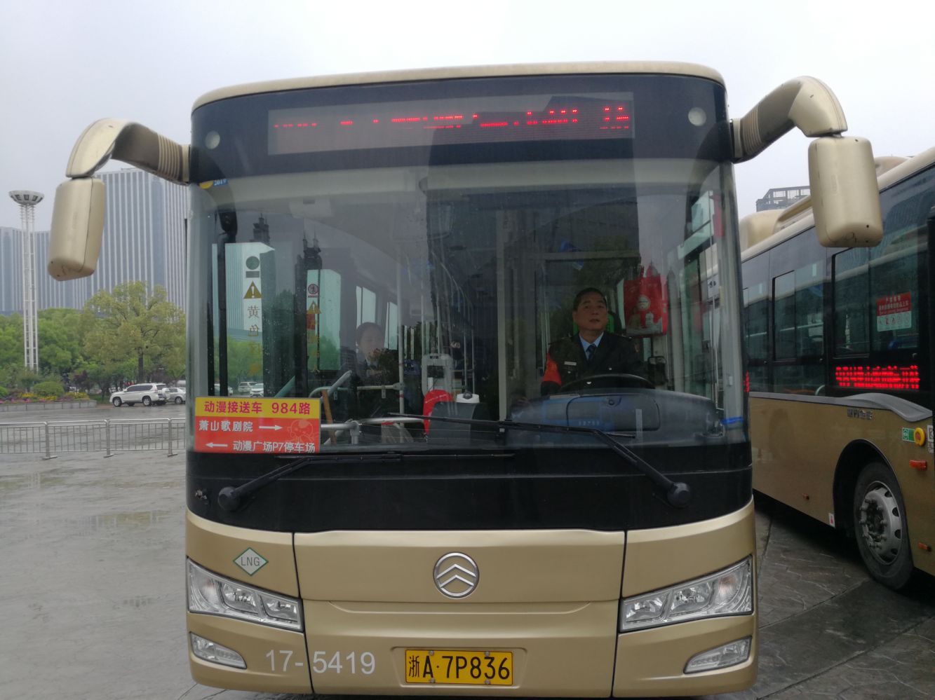 动漫专线984路,从萧山歌剧院至动漫广场P7停车场。该线路去程从萧山歌剧院始发,经市心中路、金惠路、金山路、金城路、滨康路、西兴路、滨文路、江晖南路、白马湖路至动漫广场P7停车场;返程从动漫广场P7停车场始发,经白马湖路、江虹南路、江虹路、滨康路、金城路、市心中路至萧山歌剧院。首末班时间,萧山歌剧院为8:30-15:00,动漫广场P7停车场为10:00-18:00。