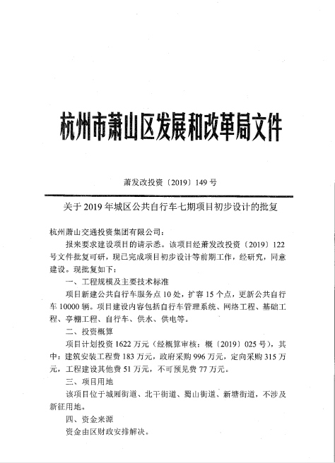 该项目分布于城厢街道、北干街道、蜀山街道、新塘街道等街区,计划总投资1622万元,建设内容包括自行车管理系统、网络工程、基础工程、亭棚工程、自行车、供水、供电等。由萧山交投集团下属客运站场建设部负责实施建设,现已完成区发改局初步设计批复,后续施工图审查和预算编制工作正有序进行中。