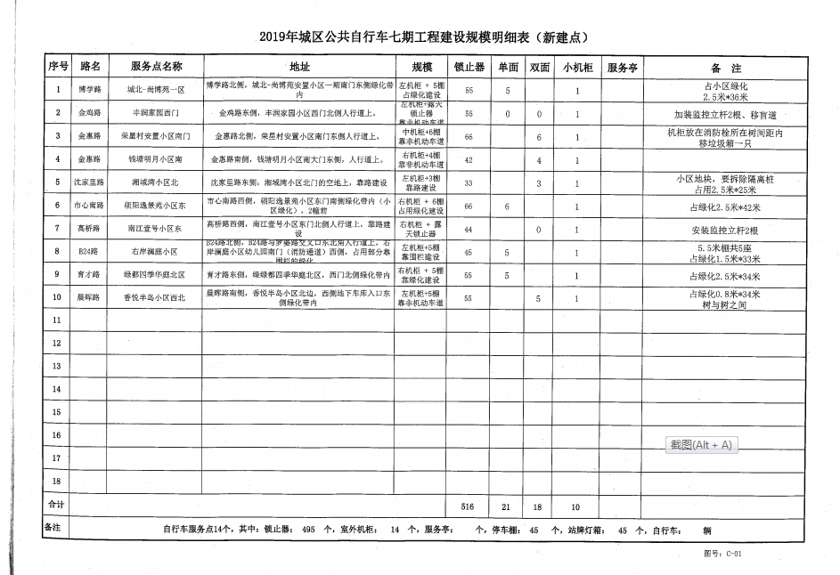 为推进市区公共自行车建设,通过前期选址与所涉街道,社区对接,2019年萧山城区公共自行车七期项目确定新建服务点10处,扩容15处,更新公共自行车10000辆。