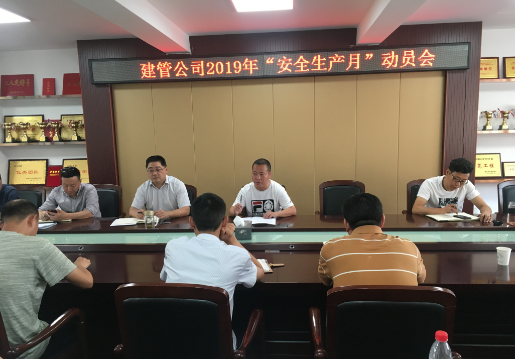 5月22日下午,交通建管公司在201会议室组织召开2019年“安全生产月”动员会,会议由建管公司党支部书记杨涌、副总经理龚铁峰、及各参建单位项目负责人参加。