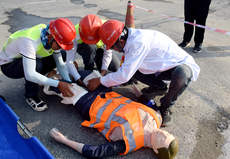 演练活动中,项目部根据提前编制好的《安全应急救援预案6》,成立了应急救援组,由医疗救护组、应急抢险组、通信联络组、善后处理调查组、警戒保卫组等组成。各小组分工明确,紧密配合,紧张有序。