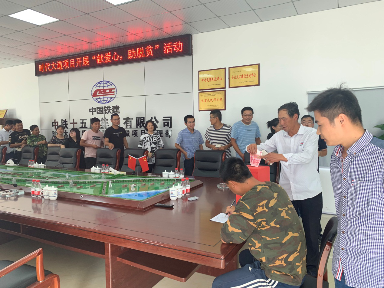 近日,时代大道改建工程临时党支部积极响应萧山交通建管公司党支部的号召,组织全体职工开展“献爱心 助脱贫”捐款活动,向中国铁建定点扶贫河北省张家口市万全区、河北省张家口市尚义县、青海省果洛州甘德县进行爱心捐款。
