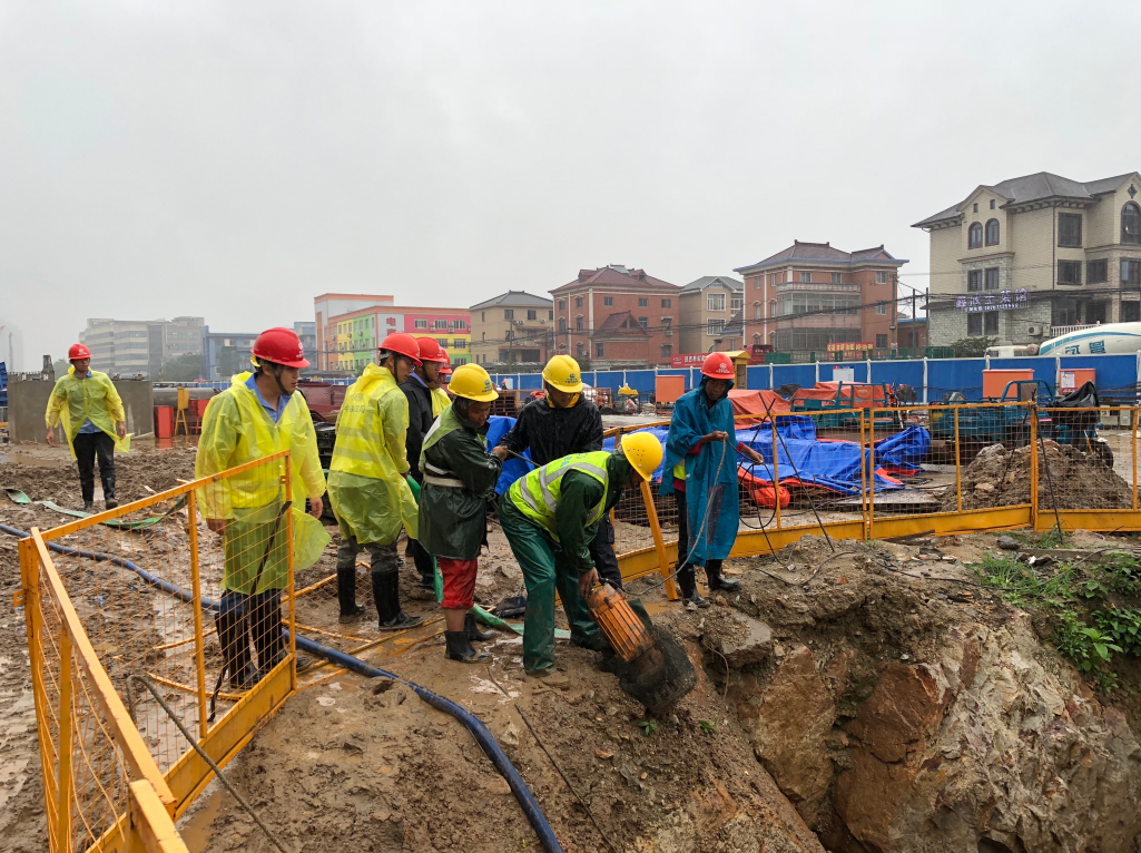 此次演练共设置防汛应急队伍集结出动、现场基坑积水排除、沙袋运送制作挡水坝、疏散被困群众四项内容。演练模拟了萧山区突降大到暴雨,水势较大施工现场低洼地带道路、基坑雨水堵塞,施工现场周围发现被困群众。