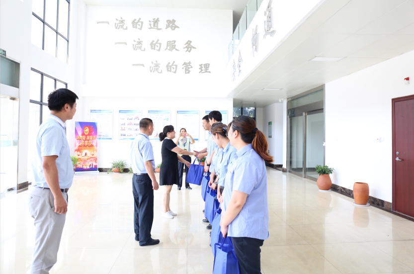 7月28日上午,公司领导班子到各站点慰问了一线员工,在工作现场,领导们为一线收费员送上了夏季清凉用品等慰问品,并亲切询问了一线员工们的作息时间和生活状况,对大家高温天气下坚守岗位的精神表示高度赞扬,同时叮嘱大家要做好防暑降温措施,合理安排休息时间,保持良好的精神状态,在做好文明服务的同时,确保现场工作有序畅通。