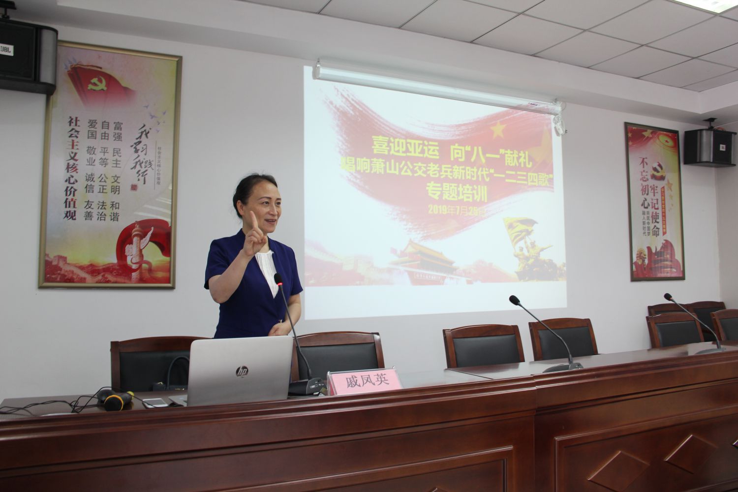 建军92周年之际,为提升一线驾驶员职业道德素养,提高服务意识和服务质量,给市民营造文明和谐的乘车环境,7月27日上午,萧山公交公司积极组织开展“喜迎亚运 向八一献礼 唱响萧山公交老兵新时代一二三四歌 ”专题培训,公司党委书记王黎洪、六车队管理人员、405路线全体退伍老兵司机参加活动。