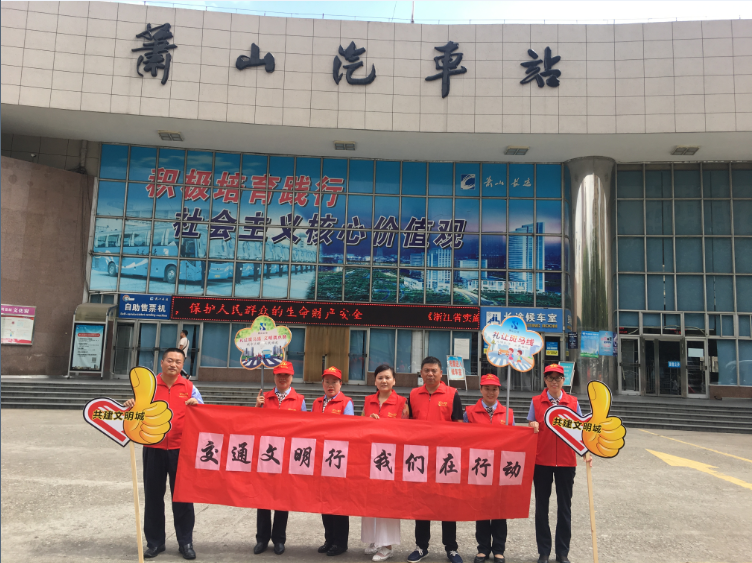 为进一步倡导美丽萧山文明风尚,号召广大市民崇尚礼让,做文明驾驶的示范者、做文明行车的践行者,8月8日上午,机场高速公司组织志愿者在萧山汽车总站主要行人斑马线路口开展“文明交通行 我们在行动”交通安全劝导。