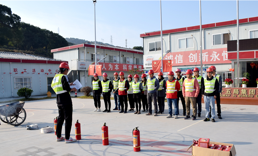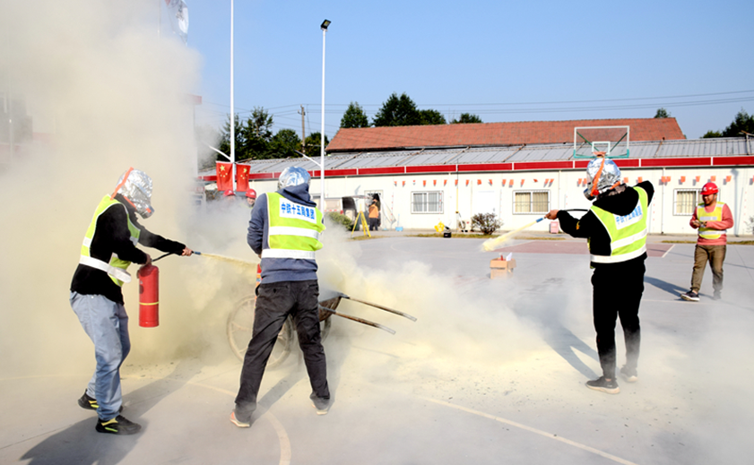 本次应急演练在项目驻地举行。为做好本次演练,项目安全总监、安质部、工程部认真研讨、制定演练方案,就演练现场进行指挥布置,对参加演练人员进行活动动员。上午8点30分,随着一声清脆的哨响,现场所有人员进入应急演练状态。项目安质部门首先讲解了消防基础知识、发生火情后逃生措施及器具使用技巧,项目部模拟楼梯间因线路老化造成堆放的杂物发生火灾,安全员发现后,立即发出警报,通知所有人员进行撤离,然后项目部消防救援队观察火势后,佩戴防烟面罩携带灭火器进行火势控制,火势进一步蔓延至二楼,灭火人员撤出,进一步采用消防栓水枪进行扑灭,火势逐渐变小至熄灭。