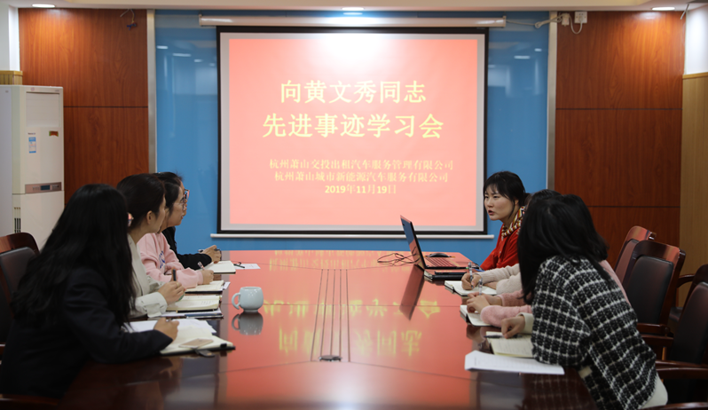 2019年11月19日下午,新能源汽车公司联合交投出租车公司开展向优秀共产党员黄文秀学习活动,两个公司的妇女同志参加了此次学习会。学习会上,常务副总王建维首先介绍了黄文秀同志的基本情况,接着组织妇女同志观看了黄文秀同志的视频短片,进一步了解黄文秀同志的先进事迹。