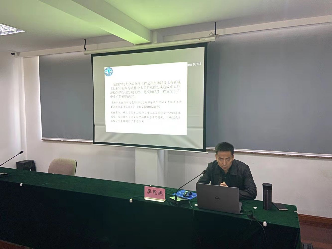 为进一步加强工程安全管理,强化管理人员的安全意识,深入推进交通工程建设领域“平安工地”建设,确保交通工程建设领域安全生产形势持续稳定,11月23日,交通建管公司组织在建工程各参建单位的项目经理部负责人、技术、安全负责人、专职安全员和公司相关人员进行了安全管理工作专题培训。参加本次专题培训人员65人,专题培训由分管副总经理龚铁峰主持。
