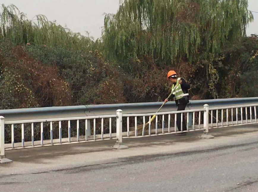 迎检期间,红十五线改建工程项目一标段特安排工人20名每天从我标起点位置进行全线清扫,保证施工路段整洁干净;安排洒水车1辆,对全线进行除尘洒水,减少了扬尘污染;安排拖拉机2台,城市护栏维护工4名,对临边防护设施进行排查,发现破损、毁坏及时进行跟换。临时隔离设施设备、安全警示标志标牌保持正向、干净,显示清晰有效,保证路面畅通。