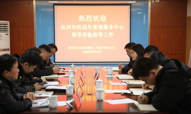 12月11日下午,杭州市机动车管理服务中心租赁管理处副处长孙景春一行,莅临新能源汽车公司调研指导工作,萧山区道路运输管理处副主任赵连国、维修驾培科科长施铭陪同,公司董事长韩朋朋,常务副总王建维及各部室相关人员参加会议。