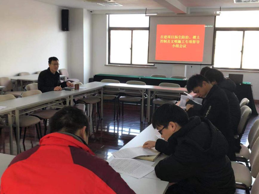 根据《杭州市萧山区人民政府办公室关于杭州市萧山区“蓝天集结号”扬尘防控专项行动的实施方案》和《杭州萧山交通建设管理有限公司关于在建项目扬尘防治、裸土控制及文明施工的实施方案》的文件精神及相关要求,为进一步提升各项目的文明施工标准,有效建立健全扬尘污染防治、裸土控制的工作机制,洪总听取了各项目督查汇报后,针对各项目的“文明施工”的情况,提出了三点的要求,一是重点检查各项目路面清扫、坑洞修补、围挡清扫、围挡修补、护栏清扫、裸土覆盖等工作的落实情况;二是督导小组组员在日常检查及联合检查中发现的问题,需立即下发整改通知单并及时跟进整改情况;三是各督导小组成员灵活组织开展不定期专项检查,重点把控在建项目现场扬尘防治、裸土控制及文明施工的落实情况。