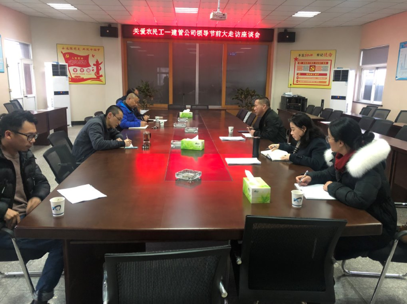 座谈会上,各项目负责人汇报了各自标段目前的民工工资支付情况和春节民工返乡情况,在返乡情况中具体询问了返乡民工人数,返乡民工购票等情况。在留守民工情况中,具体询问了他们的值班分工和项目部春节期间活动安排等。