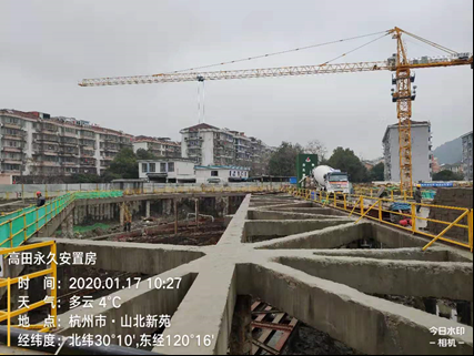 2020年1月18日,高田永久安置房项目第一块混凝土底板顺利浇筑完成。首块底板浇筑砼方量1213m³,历时23个小时圆满完成。