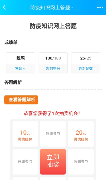 此次活动的开展,全体员工答题热情踊跃,对预防新型冠状病毒有知识更深层次的了解,提高自身的防护能力,加强了项目新冠肺炎疫情防控工作宣传,建立了保护职工健康的安全防线,助力打赢疫情防控阻击战。