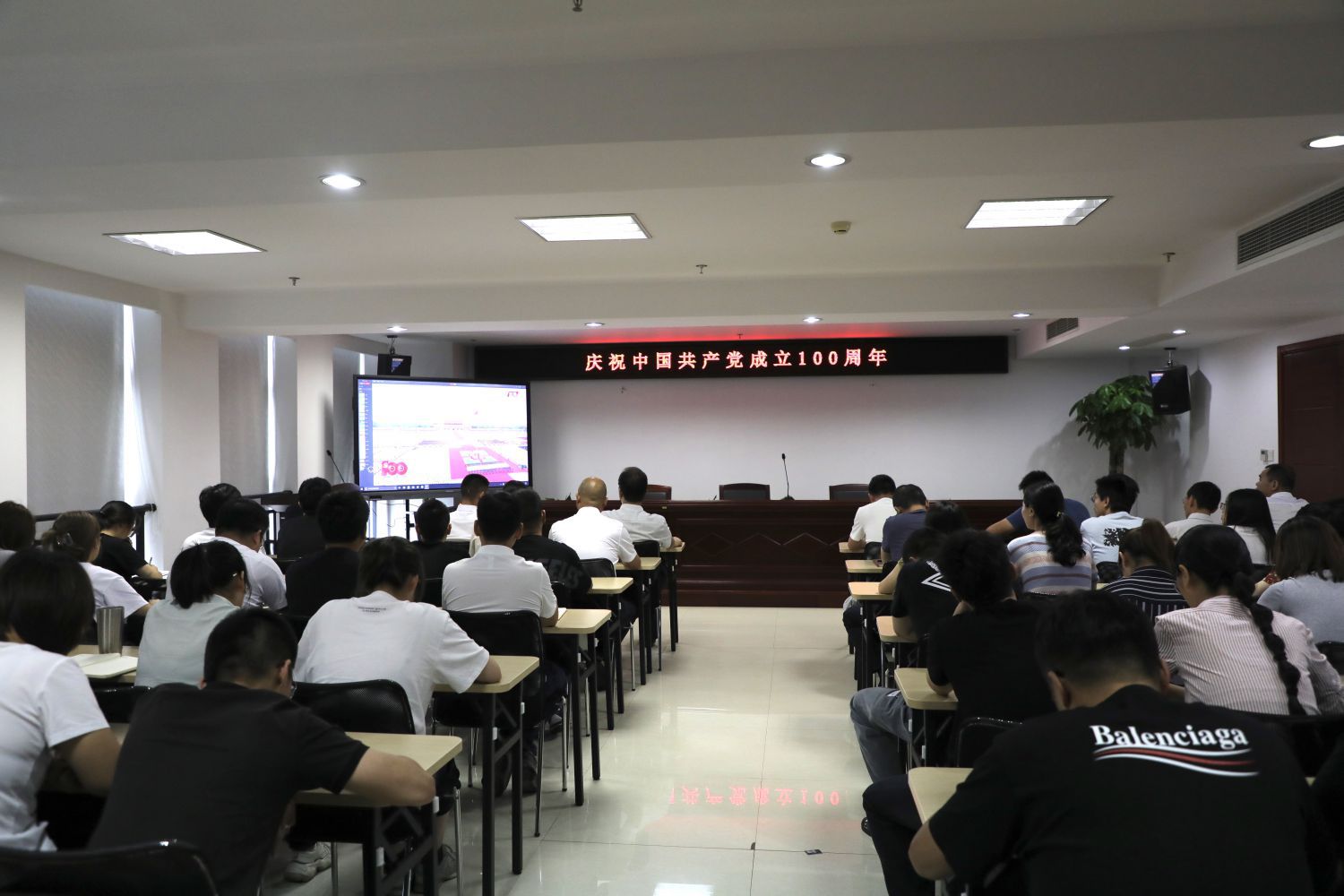 7月1日上午8时,庆祝中国共产党成立100周年大会在北京天安门广场隆重举行。城区建设公司组织全体员工集中收看庆祝大会现场直播,认真学习领会习近平总书记重要讲话精神。