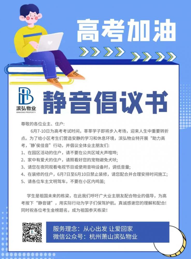 为了营造一个“安静、安全、温馨”的备考环境,我们采用线上宣传和线下温馨提示相结合的方式,劝导小区内可能打扰考生的各类行为。我们呼吁装修业主避免噪音施工,驾驶机动车辆不要鸣笛,家中电视音响音量调低。同时,我们提醒园区内跳广场舞、养宠的业主尽量不要在公共区域内大声喧哗,确保考生能拥有舒适的学习和休息环境。此外,我们还提醒考生注意劳逸结合,积极调整状态,保持身心健康。