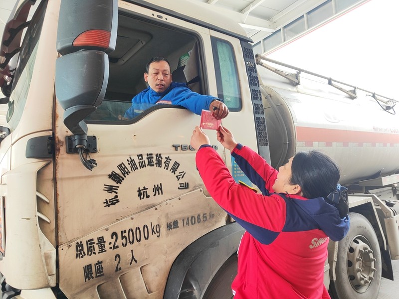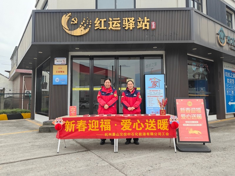 2月10日,春运返乡高峰之际,交投能源公司工会在建盈村加油站爱心驿家开展“新春迎福 爱心送暖”活动,为返乡务工司乘人员送上新春祝福。