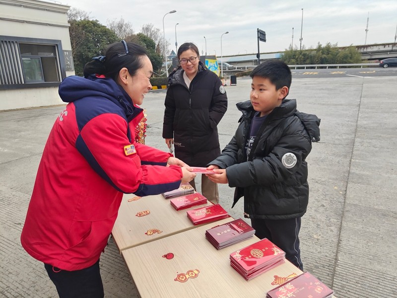 建盈村加油站邻近机场高速,春节前每日有大量跨省返乡司乘途经。工会针对其“赶路急、盼团圆”需求,设“福”字、新年红包等营造中国年味,工作人员现场递热饮、送祝福。河南司机王师傅感慨:“十年运输首收驿站祝福,热茶暖胃、红包暖心,今年能早陪孩子贴春联了!”