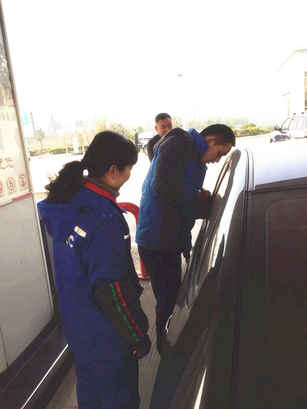 加油站员工以最快的效率帮助顾客解决了燃眉之急,想顾客之所想,急顾客之所急,用自己的热心和真情服务顾客,反馈社会。在这个寒冷的冬天,给顾客带去了最踏实的温暖。