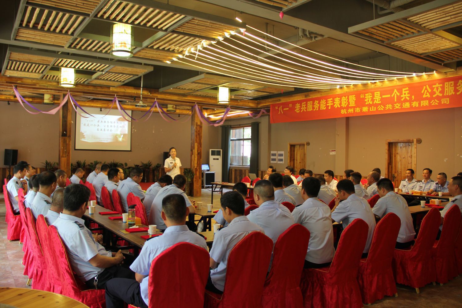 八一建军节之际,为充分发挥公司退伍老兵内在优势和示范带动作用,切实将退伍老兵凝聚到建设优秀公交的战斗中来,萧山公交公司于8月4日上午召开“八一”老兵服务能手表彰暨“我是一个兵,公交服务是标兵”交流座谈会议。公司班子领导、各分工会负责人、各车队“老兵服务能手”、老兵服务示范岗人员等共计50余人参加活动。