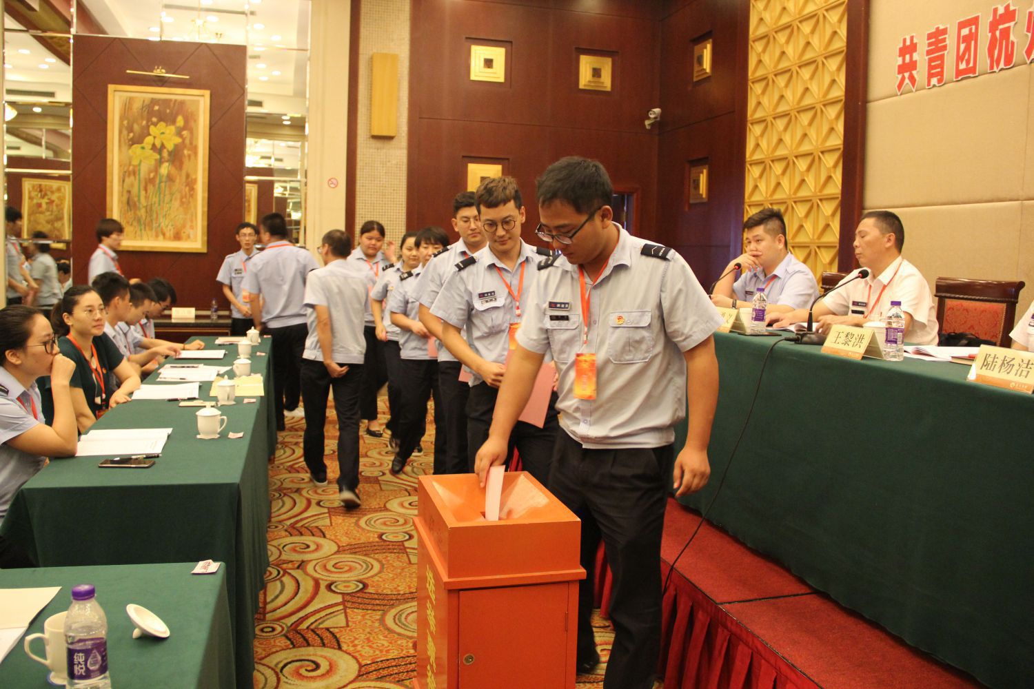 大会在庄严的国歌声中拉开序幕,公司团委书记王阳同志代表第三届团委作工作报告,副总吴勇义宣读了<交投集团团委《关于同意萧山公交团委换届选举请示的批复》>。大会审议并通过了《共青团杭州市萧山公共交通有限公司第四届委员会候选人推荐办法(草案)》等选举草案。随后,大会通过无记名投票的方式,差额选举产生了新一届团委,王阳等12名同志当选为新一届团委委员,新当选委员代表进行了表态发言。