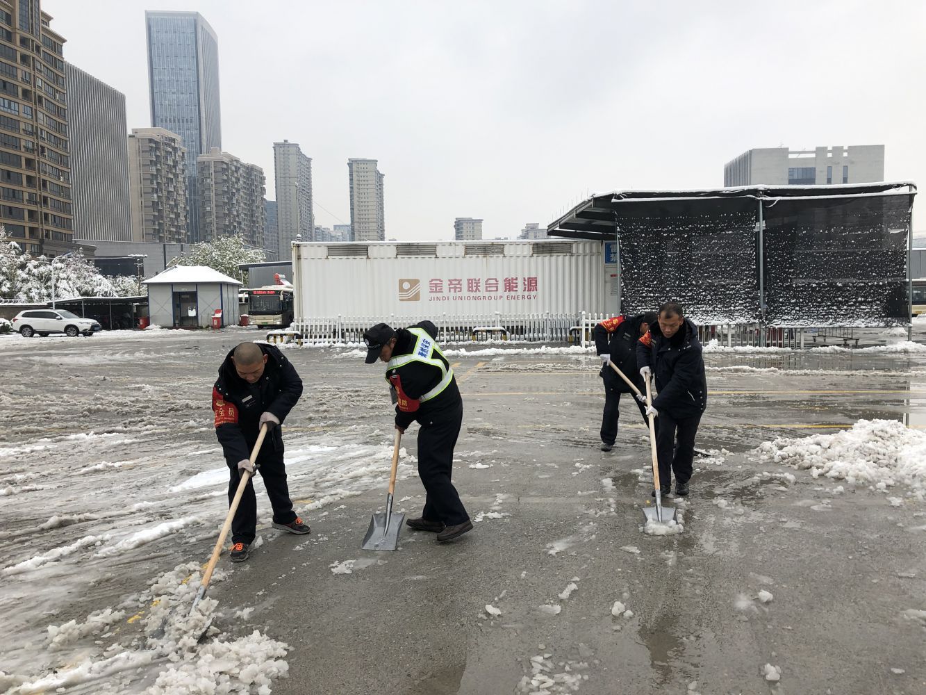 参加抗冰雪任务的不仅有各级管理干部,还有来自各个部室、车队、分公司、管理中心的一线司机、站员、站场保安、物业人员、修理工、公共自行车值守人员、党团突击队队员等。大家不畏严寒,相互配合、齐心协力,你铲我扫,一派热火朝天的景象,虽室外气温低至零度,但大家的抗击热情只增不减,越战越勇。特殊时期彰显公交本色,关键时刻尽显责任担当。大家心往一处想,劲往一处使,拧成一股绳,积极面对这场抗击冰雪的硬仗,确保了行人行车的安全畅通。