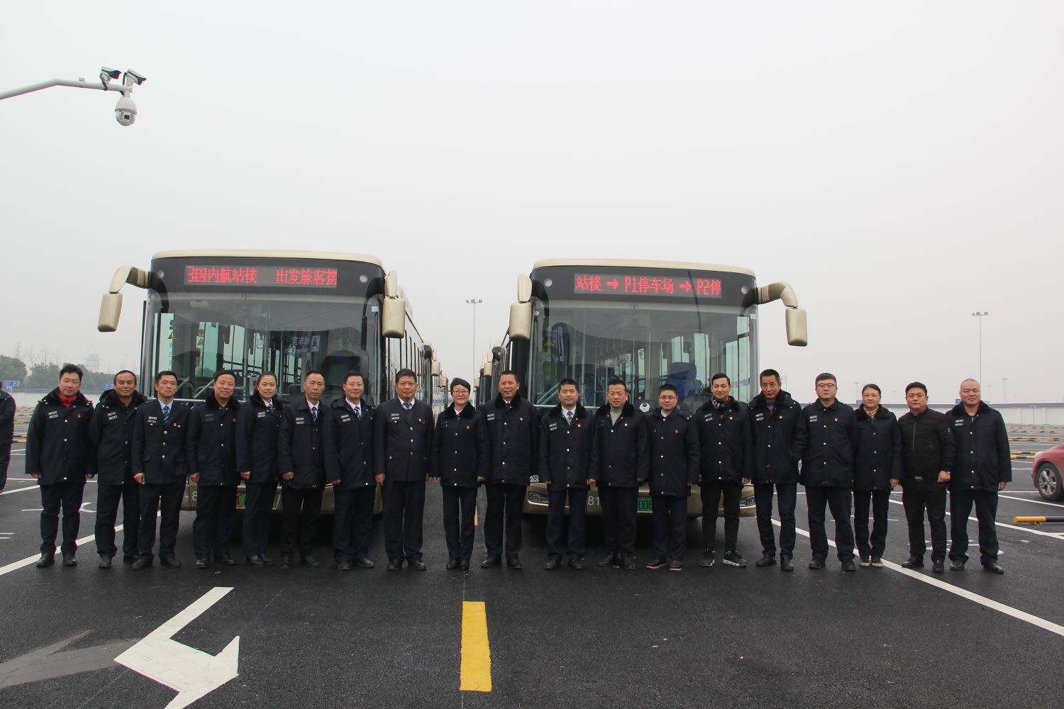 为充分利用公交优质资源,推动民生服务触角向更宽领域延伸,近日,萧山公交与杭州萧山国际机场开展了卓有成效的合作,投入的20辆电气混合新能源车在机场新停车场和航站楼之间进行免费循环摆渡,10分钟/班,高峰时间将进一步加密,以方便旅客往返于新建P1、P2停车场和T1、T2、T3航站楼。1月20日上午,萧山公交班子领导携相关职能部室在杭州萧山国际机场隆重举行了机场摆渡车试运营启动仪式。
