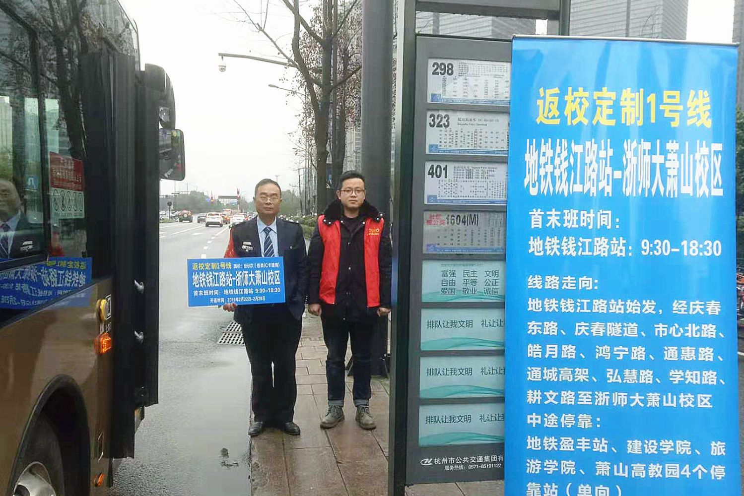 为积极应对客流高峰,进一步做好出行保障,萧山公交通过客流调查和现场调研,在2月22日至2月28日期间开通三条高校返校定制线,往来于交通枢纽与高教园区、住宅区之间,确保广大学子顺利返回高校。三条返校定制线中途停靠站点与高教园周边地铁站实现无缝连接,同学们凭借各类IC卡可以自行搭乘。