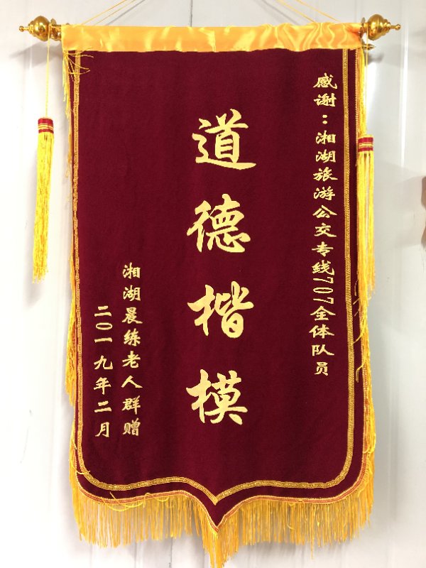 前不久,707路巾帼标兵们收到了一份特殊的礼物——湘湖晨练老人们专程送来的锦旗,旗上闪亮的“道德模范”四个大字,既是群众对她们 日复一日辛勤付出的充分肯定,更是对她们优质服务的殷切期望。今后,相信这群新时代巾帼标兵会继续践行公交责任,树立服务典范,开好政府放心车,开好市民满意车,用优质服务打造杭城最美的流动文明风景线!
