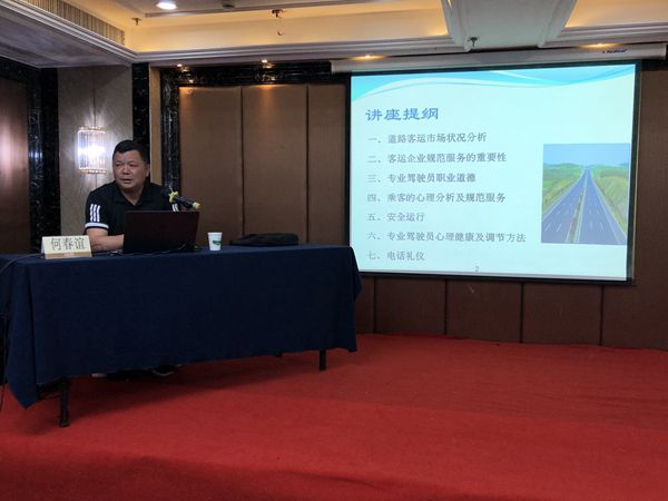 本次培训邀请了浙江交通技师学院的何春谊教授来给大家做文明服务的培训,何教授担任大型客、货车驾驶教练员工作26年,从事汽车类专业培训工作15年,是一位资深的老师。何教授从道路客运市场状况分析、客运企业规范服务的重要性、专业驾驶员职业道德、乘客的心理分析及规范服务、安全运行、专业驾驶员心理健康及调节方法、电话礼仪等几个方面授课。希望通过这样的培训,让我们的驾驶员在今后实际工作中身体力行地去践行文明服务规范,较好地展现长运人讲文明、重礼仪、热情服务的良好形象。