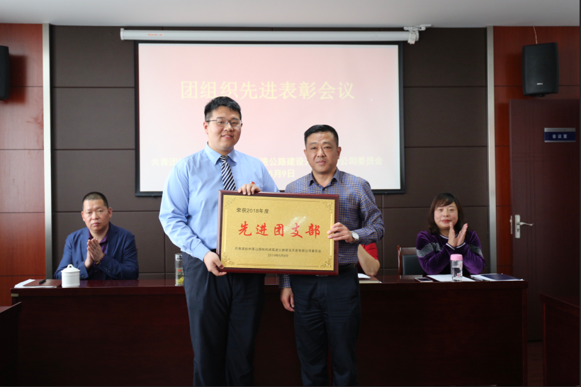 会议首先宣读了《关于表彰2018年度团组织先进的决定》,授予坎红路匝道收费站为“先进团支部”,潘旭鹏等五名员工为2018年度“优秀团员”,李希雨等两名员工为2018年度“志愿服务先进个人”。公司总经理李忠晓,党支部书记、副总经理陈强,副总经理卜建刚分别为先进集体和个人颁奖。
