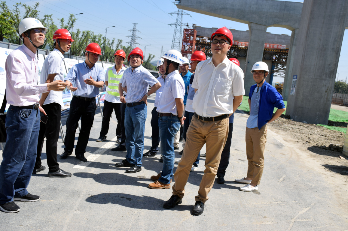 5月24日上午,杭州市交通工程质量安全监督局局长周成灯、交通质安局安全处处长沈叶飞,调研时代大道改建工程。集团副总经理金文华,建管公司经理许柯尧,以及建设、施工、监理单位负责人陪同调研。