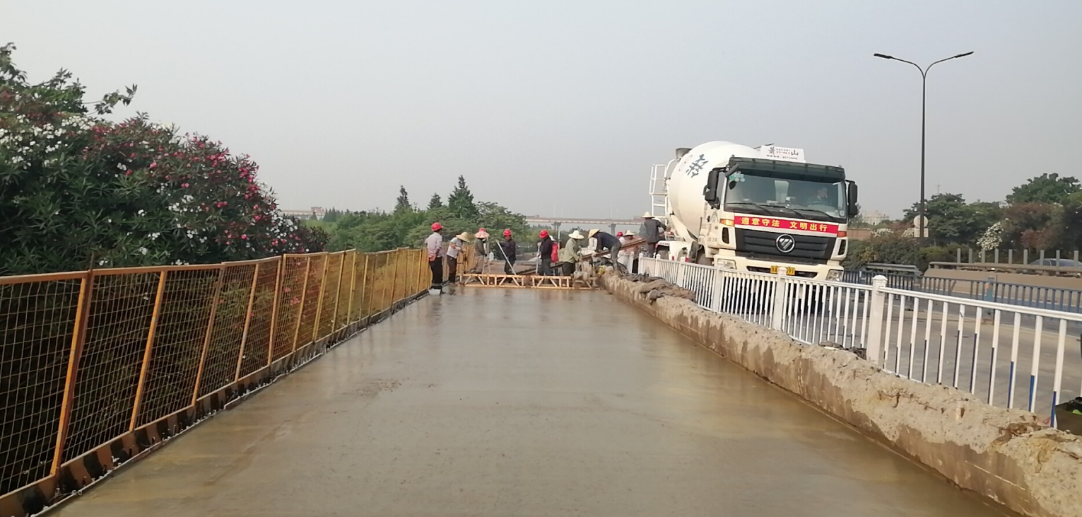 6月3日,红十五线改建工程项目1标段K1+322现代桥左幅桥面铺装浇筑完成,为后续的桥面系及附属工程施工拉开了序幕。